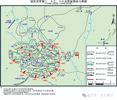 一、第二兵团司令部在夏岩,即于陈官庄、青龙集,东西之线,先行占领阵地,4日向濉溪口攻击前进,右翼(西)与第十六兵团,左翼(东)与第十三兵团连系。