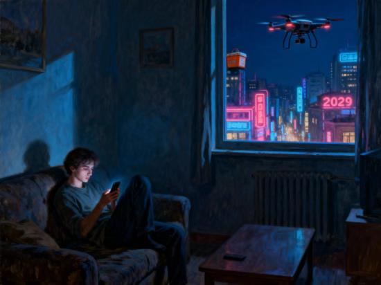 此刻,你可能正缩在出租屋的沙发里,指尖机械地刷着手机屏幕。窗外是霓虹闪烁的城市,外卖无人机像巨大的蜂群在夜色中嗡嗡作响。你的账户里或许有一笔积蓄,也可能背负着房贷,或者刚刚在某个所谓的“风口”上被算法优化掉了工作。