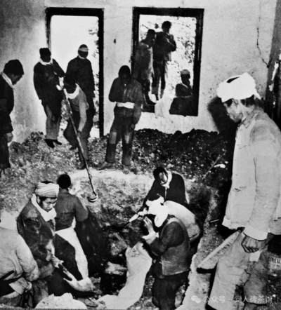 1949年12月7日,西南局、重庆市和解放军同志到被国民党屠杀焚烧后的渣滓洞监狱察看。时盘棋 摄
