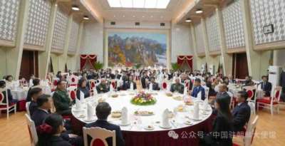 2025年10月23日晚,中国驻朝鲜志愿军烈士褒扬代表处举行的纪念中国人民志愿军抗美援朝出国作战75周年招待会。中国驻朝鲜大使王亚军、冯春台公使、王宜胜少将国防武官、王从容公参等外交官及在朝中资机构、媒体、旅朝华侨、留学生代表,正在朝鲜访问的抗美援朝老战士、烈士亲属和中央国家机关干部祭扫代表团,朝鲜城市经营省对外经济局局长金哲英及外务省、城市经营省、国防省、国家设计指导局等有关部门代表参加。