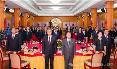 2025年8月20日,中国驻朝鲜使馆举办纪念中国人民抗日战争暨世界反法西斯战争胜利80周年招待会。王亚军大使及冯春台公使、王从容公参、朱家耀参赞、高武参赞、徐峰参赞等使馆外交官,朝鲜劳动党中央政治局常委、最高人民会议常任委员会委员长崔龙海,文化相承正奎、党中央国际部副部长文成革、外务省副相朴明浩、对外经济省副相柳银海、外交团事业总局总局长金益晟等朝党政军各部门负
