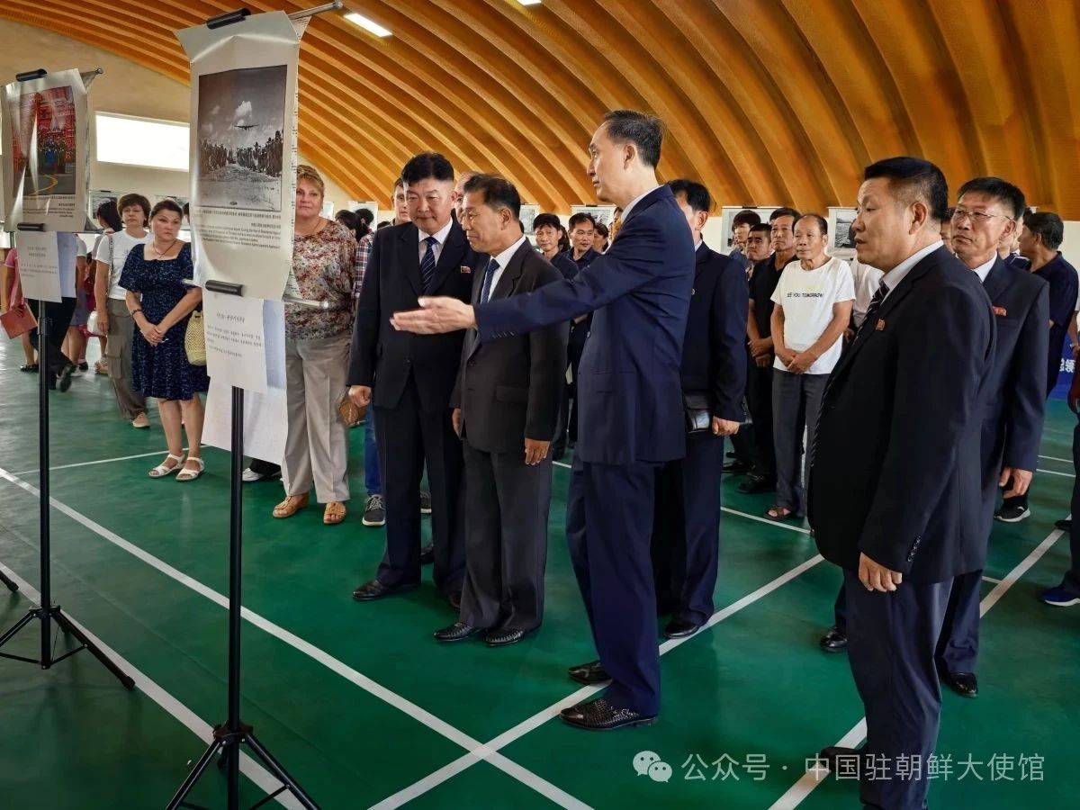 2025年8月19日,驻清津总领馆举办纪念中国人民抗日战争暨世界反法西斯战争胜利80周年图片展,金燕光总领事、咸镜北道人民委员会朴京洙第一副委员长、外事局朴永浩局长、咸镜北道华联会林基荣委员长、俄罗斯驻清津总领事科什切耶夫、清津中国人高级中学师生等150余人参加。金总领事为来宾逐一讲解每幅图片的历史背景,表示这些图片虽然难以完全展现中国人民抗日战争的全部壮烈场景,但却