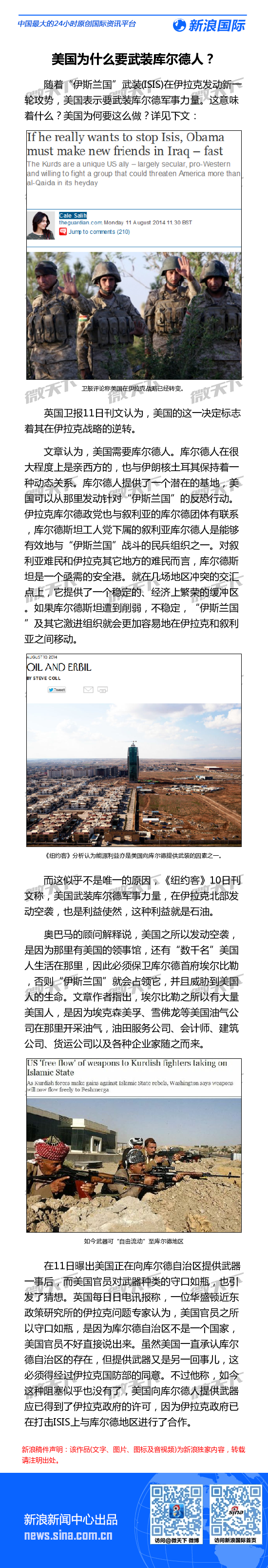 美国向库尔德提供武器:战略转变利益驱使