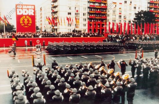由于在城市战方面的训练,这两个部队的部分分队自1989年10月初起便被军事领导层置于随时可投入对付示威的状态。在1989年10月6日至9日德意志民主共和国建国40周年庆祝活动期间,第1机步师的一个机步营(350人)在施坦斯多夫,第40空降突击团的一个伞兵连在莱宁被置于提高战备状态。彼时,波茨坦的军队医院必须预防性地准备额外床位。其依据为国防部长105/89号命令,该命令的目标与宪法规定相冲突,因为它赋予国家人民军内部安全任务:“后备力量的准备必须以这样一个目标为前提”,命令写道,“即随时能够同国家安全部和内务部力量协同,可靠地完成保障国家整体安全、公共安全和秩序以及德意志民主共和国首都柏林政治局势稳定的任务。”[23]关于部队提高战备等级的部分,105/89号命令于10月11日被废止,但对捷克斯洛伐克和波兰边境以及柏林墙的强化边境监视和守卫得以继续,并且针对国内部署的措施特别是针对内部行动的准备工作进一步扩大。“国家人民军百人编制单位在重点地区的可能使用”,施特雷利茨在致国家安全部的函件中指出,“应当按照过去几天演练过的做法,以参谋机关方式进行准备”。[24]为此目的,在全军范围内组建的百人编制单位数量持续上升,其中以陆军兵种为重点:10月10日为86个,10月20日为120个,11月6日则达183个。[25]