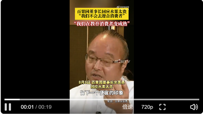 近日,百果园董事长余惠勇出了一段“语出惊人”的视频,回应外界“水果贵”的质疑,他表示: