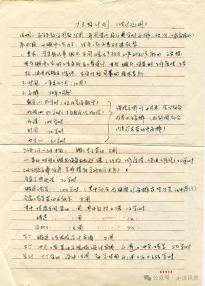 我抄录的我们专业的“教学计划(讨论稿)”第一页。可以看到,当时是将我们称为“七三级”的。