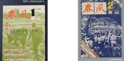 《春风》第一期,印了2万本。但是书店不敢公开卖,我们半夜骑着摩托车,驮着几百本挨家给书店送,送了1万本。那个一定要向书店收现金,要不然隔天可能被禁掉了。然后白天会有人到书店去问有无杂志,老板就把他引到后头,把这本杂志拿给他。这个杂志很好卖,而且卖得贵。这期我们赚了钱,大概5千本的成本收回来了。第一期的封面就是我写的一首短诗,题为《春风》: