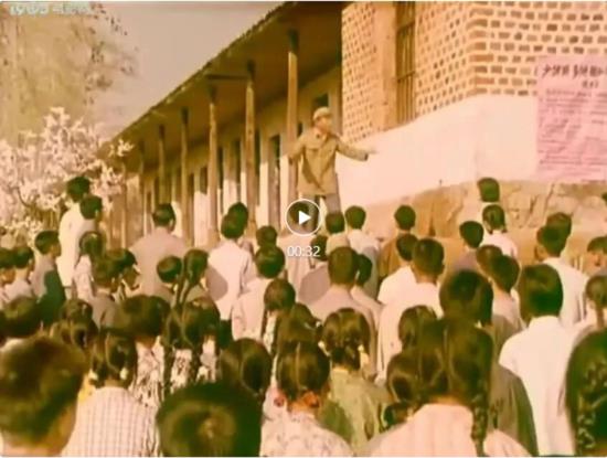 当龙校长开始介绍当年怎么在延安抗大自己挖窑洞,怎么听毛主席讲课时,民乐演奏的《抗大校歌》音乐声起。