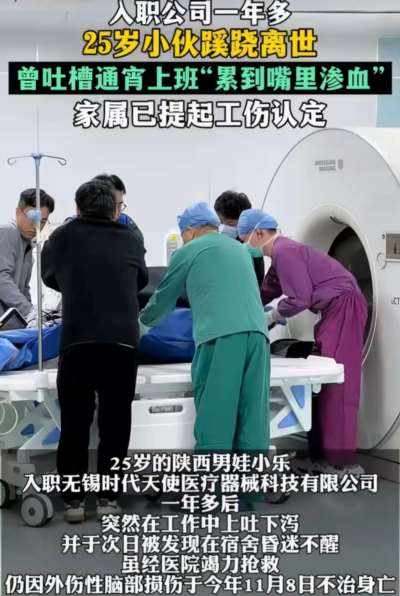 25岁的陕西韩城男孩小乐,在入职江苏无锡一家医疗器械科技有限公司一年多后,突然在工作中上吐下泻,并于次日被发现在宿舍昏迷不醒,虽经医院竭力抢救,仍因外伤性脑部损伤于一周后不治身亡。