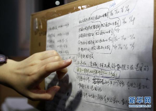 这是在上海福喜食品有限公司厂区一间办公室中发现的一整盒资料,标签上书写着“蜜汁烧烤味猪肉饼次品添加日期30/11、29/11,麦乐鸡次品添加日期4/11、6/11、22/11、23/11”等(7月20日摄)。新华社记者丁汀摄
