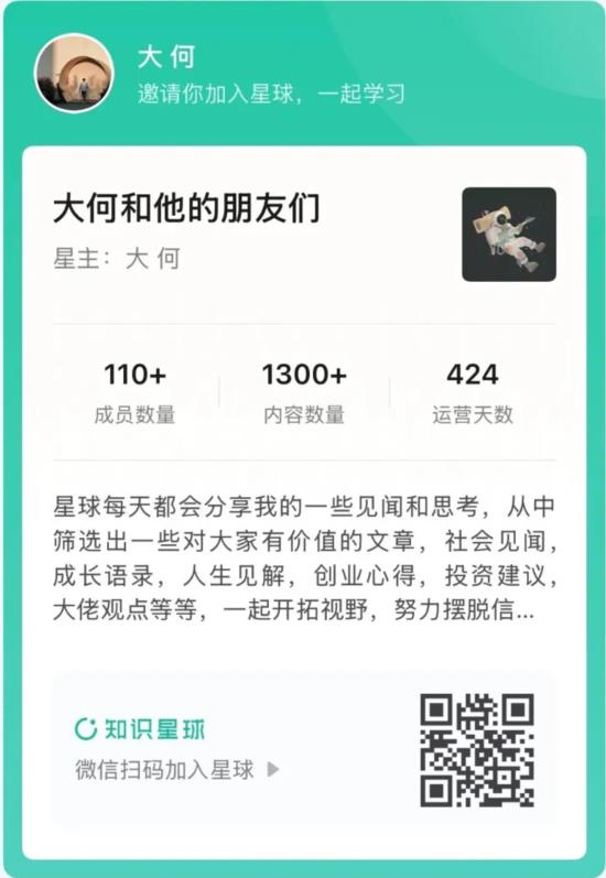 写在最后:建了一个星球社群,已经运营一年多了,欢迎三观相合的朋友们加入,目前是99元一年,每天也就几毛钱,以后人多了会考虑适当涨价。