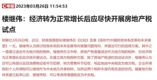 这其实是一个老生常谈的话题了,每年都会拿出来讨论一下,例如23年楼部长就提到济转为正常增长后应尽快开展房地产税。