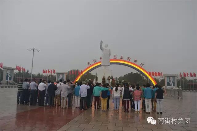 9月9日,南街村党委及各级领导冒雨在广场举行了纪念毛主席的纪念活动,部分部门同志向毛主席像敬献了花圈花篮。