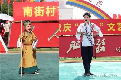 南街村村民杨兰菊带领戏迷表演了折子戏《拜寿》《戏曲联唱》,梁娟带领模特队表演了模特走秀等节目,展示了南街村丰富多彩的文化生活和浓厚的文艺氛围。
