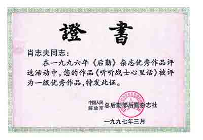 【1996年《听听战士心里话》荣获《后勤》杂志一级优秀作品】