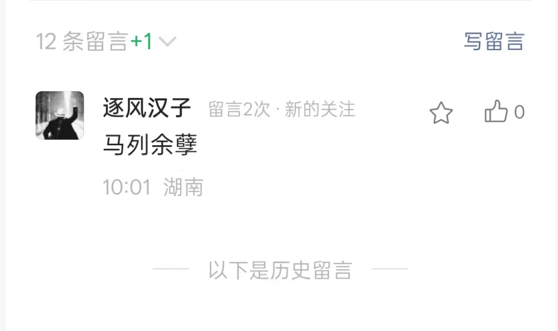 昨天,我收到一条评论:——“你是马列余孽。”我愣住了。震惊,也荒唐。震惊的是,原来坚持一些最普通的道理,就能被骂作“余孽”;荒唐的是,他们居然说得无比自然,好像只要扣上“余孽”两个字,就能让真理立即溃散。我不知道该哭还是该笑。哭,是因为这话出自同胞之口,仿佛一刀砍向自己民族的根;笑,是因为这逻辑太滑稽,竟然把曾经带领亿万人从黑暗走向光明