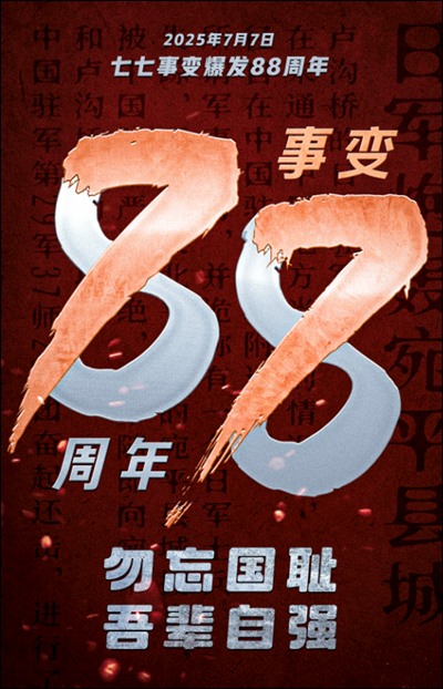 昨天, 2025年7月7日,是“七七事变”爆发88周年。 88年过去了,卢沟桥的硝烟虽已消散,那些不屈的抗争,永远定格。这一天,铭刻在每个中国人的血脉里,不敢忘、不能忘。 88年前的今天,“七七事变”爆发,拉开了全民族抗战的序幕。从那时起,大江南北,长城内外,全体中华儿女冒着敌人的炮火共赴国难。 卢沟桥畔的枪声激起中国人民奋勇反抗,吹响了全民族抗战总动员的