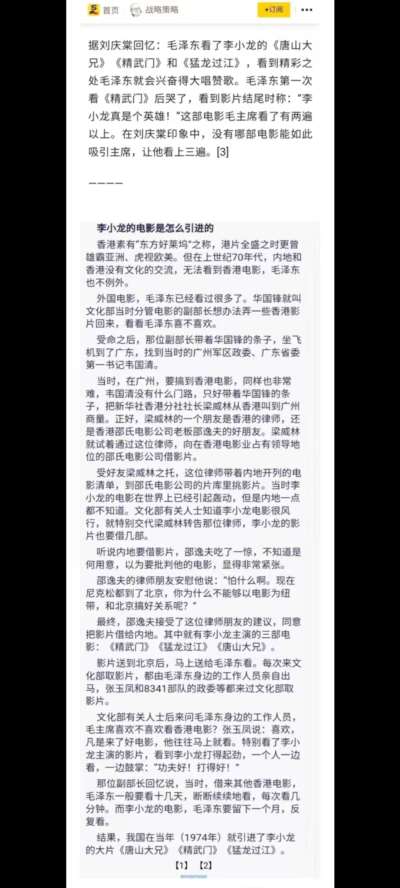 同时,我们也不必太着重执着于争论毛主席到底看没看李小龙电影,其实真正关键的不在于“事实层面”,而在于: