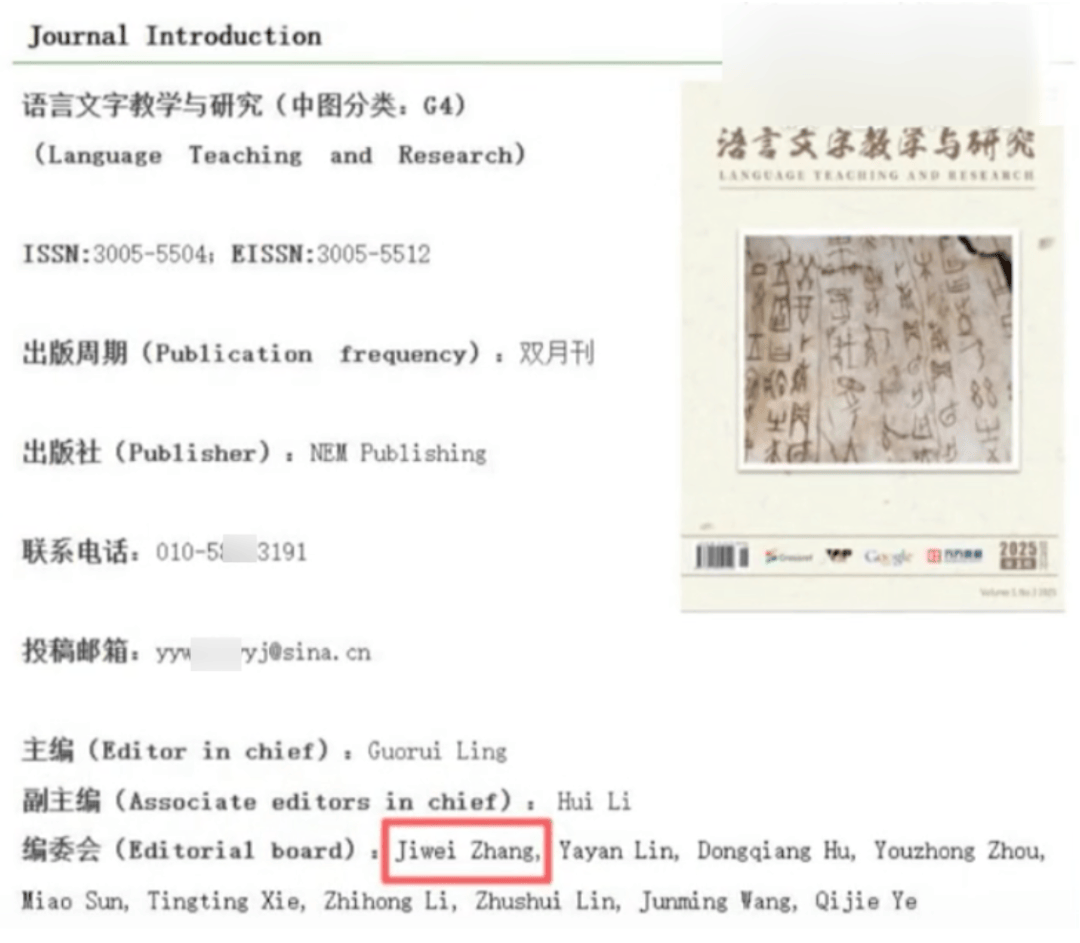 而当继续扒一下你会发现,与上面同一家出版社官网出现的《语言文字教学与研究》这一期刊上面,又出现了英文版的“张吉惟”的名字: