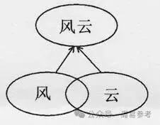 联想在世界任何文学之中都占重要的位置,而在汉文文学之中占有特别重要的位置,因为汉文中的词既常常建构于数个单音的字,就往往是根据联想而形成的。譬如风气,风云,风流,风景,风光,风雨,风俗都是联想形成的词。风云一词的形成可用下图表示: