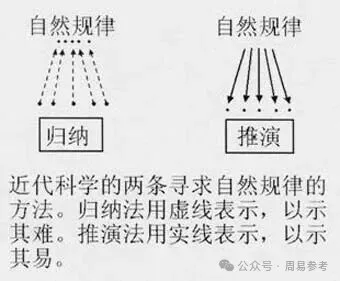 上面的故事清楚地显示归纳与推演二者同时是近代科学的基本思维方法。中华传统文化的一大特色是有归纳法,可是没有推演法。其中归纳法的来源是什么?“易者象也”,“圣人立象以尽意”,“取象比类”,“观物取象”。都是贯穿《易经》的精神。都是归纳法,是向上求整体“象”的方法。