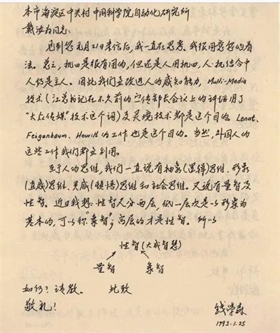 今天是高考第一天,我想起了钱老1995年6月28日致杨春鼎教授的一封信《创造需要把形象思维的结果再加逻辑论证》:  杨春鼎教授:  您6月22日信及附作都收读。  戴汝为院士和我经过讨论,对思维学又有些发展,现向您报告如下:  我们要分清脑科学与思维学。人脑是怎么接收信息、存贮和处理的?属脑科学,而这是很难的学问,到今天也