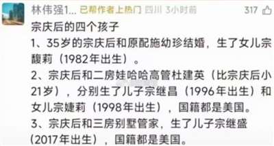 去年2月,娃哈哈创始人宗庆后去世的时候,笔者写了一篇《怀念宗庆后?比烂的结果》,引起了一些怀念者的不满,发出不到一天就被“投诉”了。 而今,宗庆后的三个美国籍私生子出来抢遗产的事上了热搜。不知道那些曾经一厢情愿给宗庆后立道德人设的怀念者们作何感想? 怀念者们拿宗庆后宣传“不开除45岁以上员工&r
