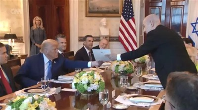 美国当地时间7月7日,在一场白宫晚宴上,一个因战争罪和反人类罪被国际刑事法院通缉的罪犯,递给一个刚刚用14枚巨型钻地弹轰炸主权国家的领导人一封诺贝尔和平奖的提名信。 他们俩,就是以色列总理内塔尼亚胡和美国总统特朗普。他们两个人,一个正在发动战争,一个发动过战争。 他们联合演出了今年国际政坛上堪称最丑陋的一场戏。 当天晚上,两人刚刚在“联合空袭伊朗核设
