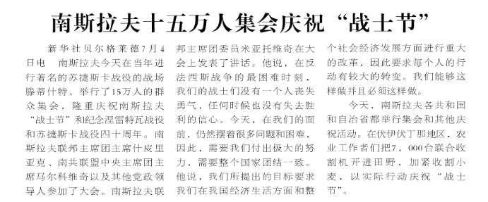 亲爱的同志们, 在7月4日这一天,我们庄严纪念战士节,纪念南斯拉夫共产党于1941年做出历史性决定,以南斯拉夫人民的自由和解放的名义发动反对法西斯主义及其所有帮凶的武装起义的周年纪念日。 南斯拉夫共产党这一决定性行动,标志着我们地区革命和反法西斯斗争史上最光辉篇章的开端。在共产党的领导下,多民族的工人群众、青年和进步知识分子拿起武器,组织了一场英勇无畏、甘愿牺