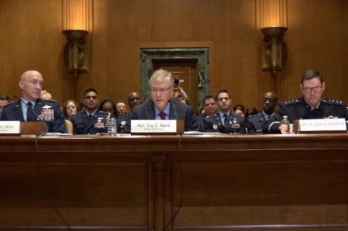 [空军参谋长将军大卫·W.Allvin(左),空军部长Troy E.Meink(中间),空间运营主管(右),2025年6月26日,在华盛顿举行的参议院国防小组委员会听证会上就2026财年国防预算作证。] 据2025年6月26日美国国防部新闻报道,一个由国防部高级和军事领导人组成的小组概述了唐纳德·J·特朗普总统提出的2026财年1.01万亿美元国防预算的轮廓。一位高级国防官员告诉记者,这